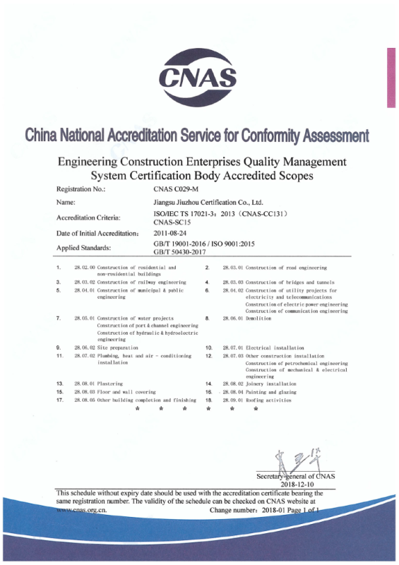 工程建設施工企業(yè)管理體系認可業(yè)務范圍-英文