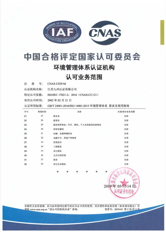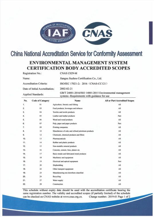 環(huán)境管理體系認可業(yè)務范圍-中文2